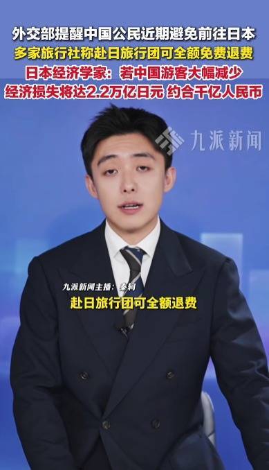 据海报新闻报道,11月16日晚,南京一家旅行社表示,近期不会安排日本旅游(行程):“24日有5位去日本旅游的客人,我已经把他们的飞机票都退了,团款一分不少的退还给他们。”另有一家旅行社发视频表示,凡是报名了日本旅游还没出游的,直接到店免费无损退改。